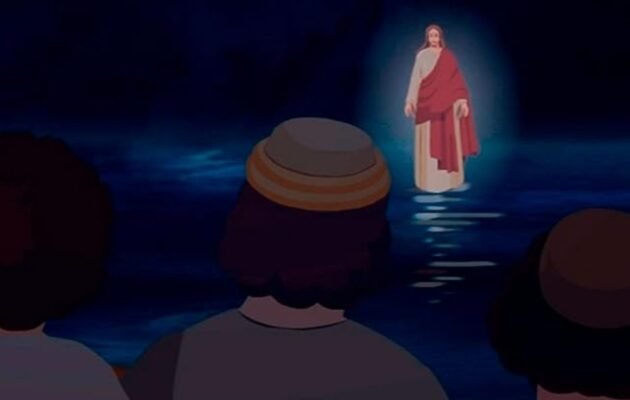 Episódio 18 – Jesus Anda Sobre a Água Pouco antes do amanhecer, Jesus foi até os discípulos, caminhando no lago. Jesus estava prestes a passar por eles, mas pensaram que ele era um fantasma. Jesus falou com eles: Tenham coragem. Sou eu. Eles ficaram completamente surpresos.